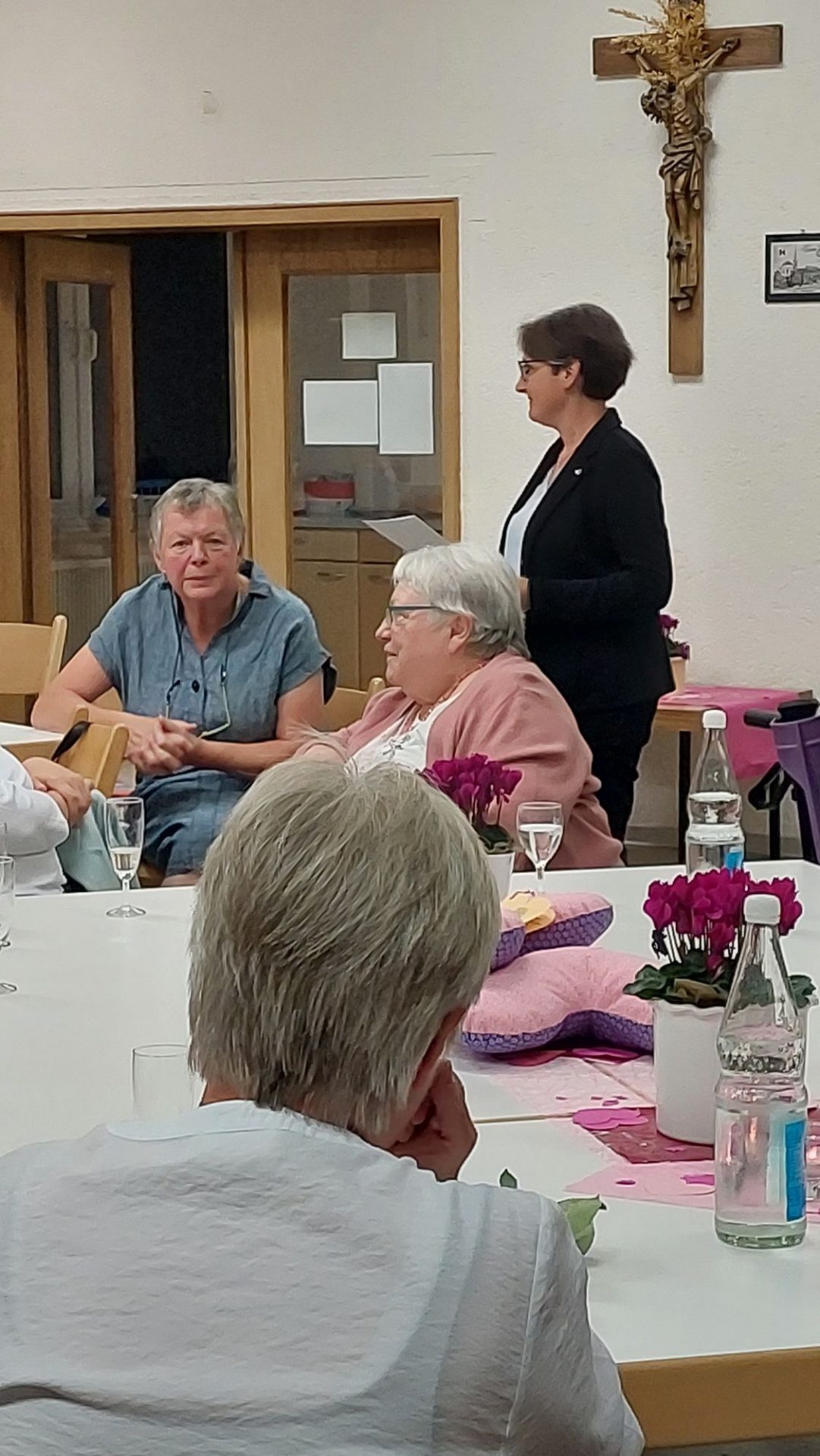 Herzlich begrüßt wurde u.a. Frau Pfarrerin Niklas Bergmann und Frau Sandra Riechers, Pflegdienstleiterin der GRN Klinik in Weinheim. Diese berichtete von den vielen Frauen, die sich nach der OP über die Herzkissen freuen. Die Kissen sollen helfen, den Druckschmerz nach dem Eingriff zu linden. Wenn es die betroffenen Frauen im Krankenhaus auf ihrem Bett vorfinden, signalisiert es aber auch Anteilnahme. Maria Dreißigacker von den Landfrauen Mörlenbach erzählte von den Nähtreffen und auch vom Spaß, den die Frauen dabei haben.