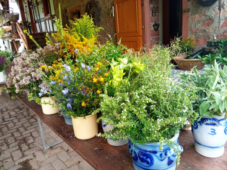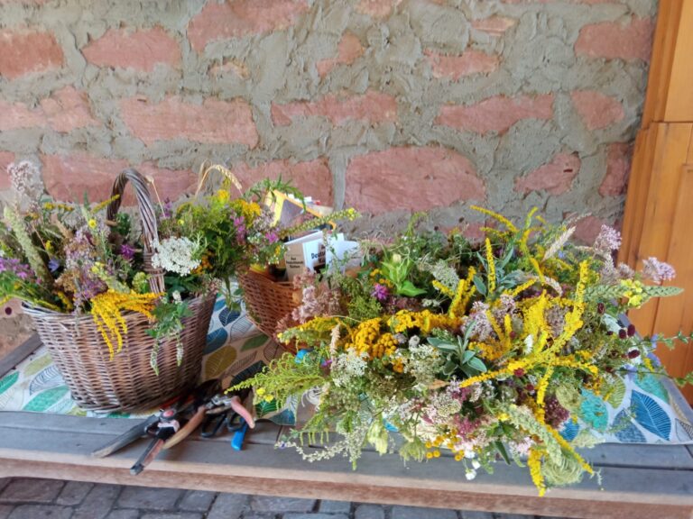 In früheren Zeiten wurden die getrockneten Kräuter im Winter an das Vieh verfüttert. War einer der Bewohner erkrankt, hatte man die passenden Zutaten im Haus, um einen lindernden Tee aufzusetzen. Doch welche Kräuter gehören in den Würzbüschel? Als eine Bezeichnung für eine Gruppe von Kräutern gilt „Maria Bettstroh“. Das sind Waldmeister und andere Labkräuter, Frauenmantel, Johanniskraut, Quendel oder das schmalblättrige Weidenröschen. Weitere typische Pflanzen für den „Werzbischel“ sind Schafgarbe, Königskerze, Rainfarn, Getreidesorten und Tausendgüldenkraut. Der Strauß aus Blumen und Pflanzen, die man auf Wiesen, im Wald oder am Wegesrand sammelt, wird ergänzt durch Blumen und Kräuter aus dem eigenen Garten.