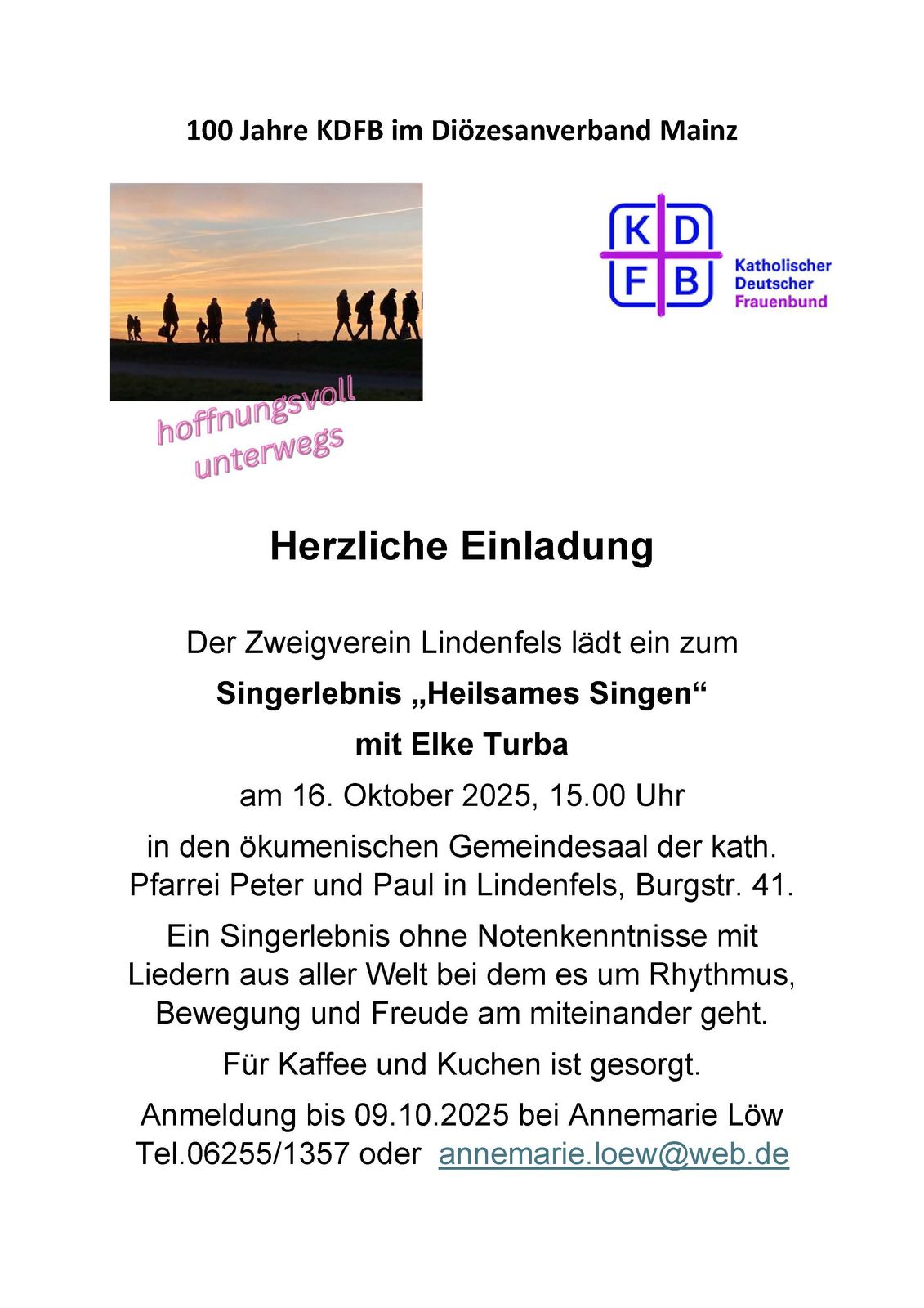 Einladung – Singerlebnis „Heilsames Singen“– 16.10.2025